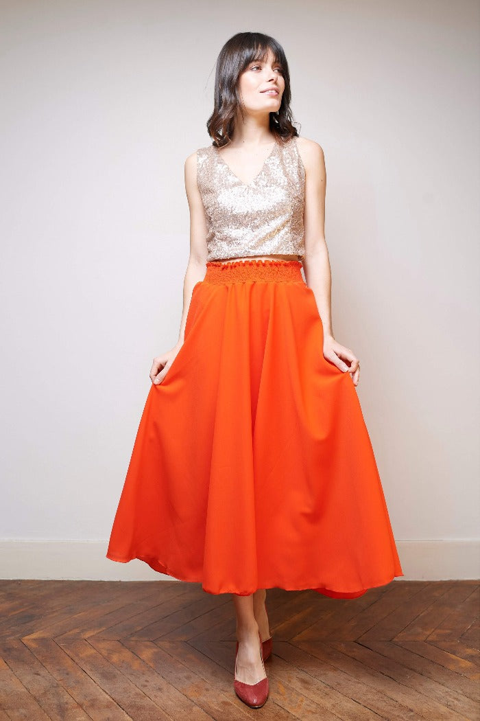 Ensemble : La Blouse rayée et La Jupe Mi Longue à fleurs