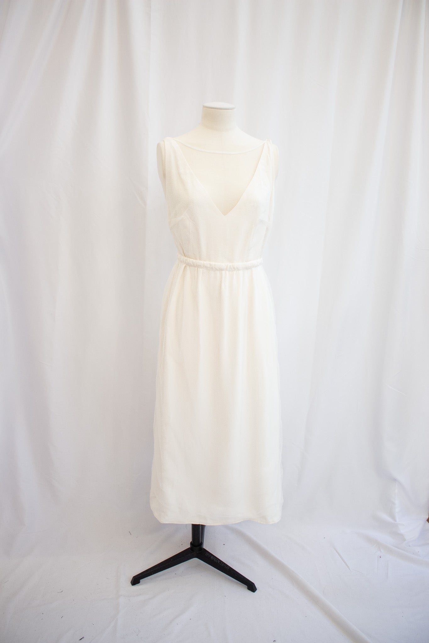 Détails : Robe mi-longue simple avec dos nu à fines bretelles croisées.