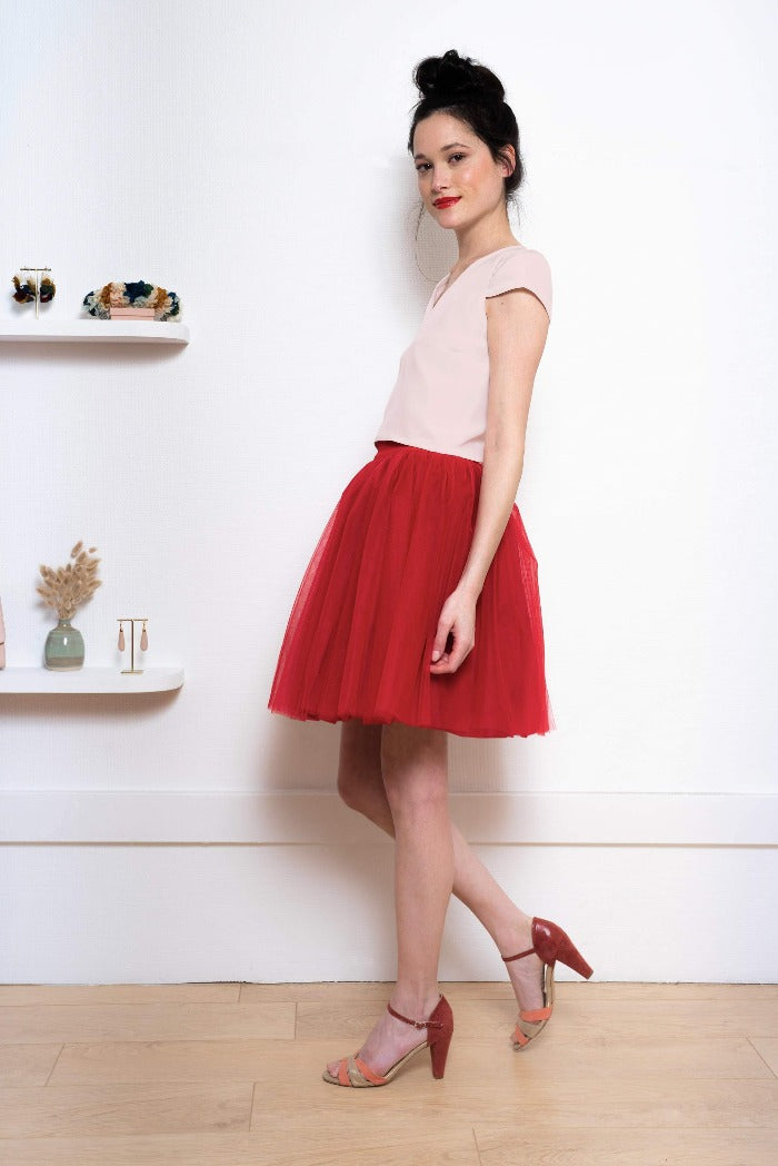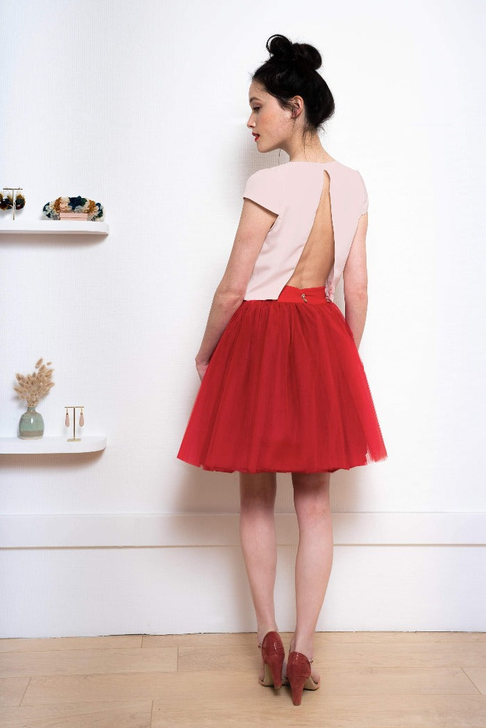 Jupon court en tulle style tutu, ceinturée à la taille.