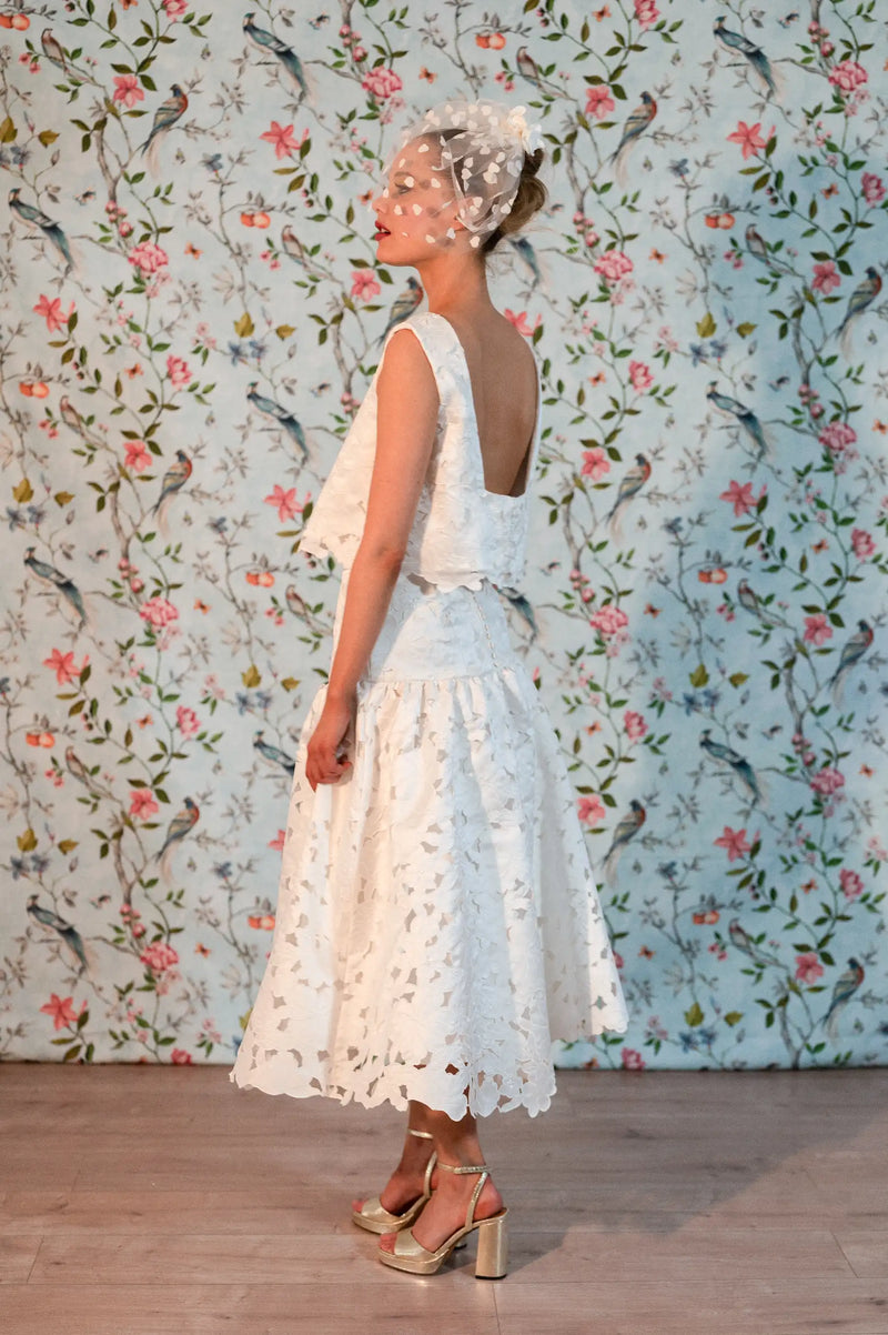 Les détails qui font tout : Jupe midi à polyester ajouré délicatement travaillé