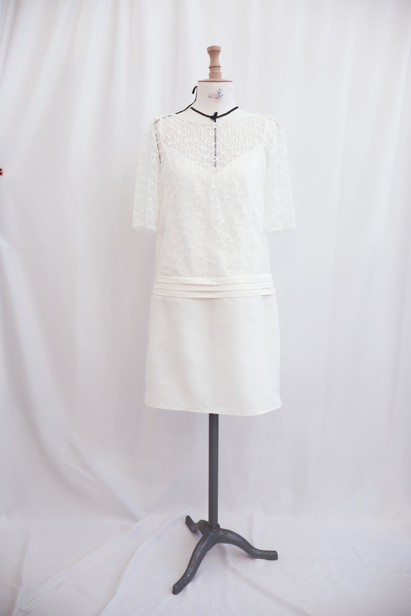 Détails : Le décolleté V de ce modèle peut être porté devant ou dos. Il est possible que le délai d'envoi de votre robe soit un peu plus long pour pouvoir terminer les finitions.