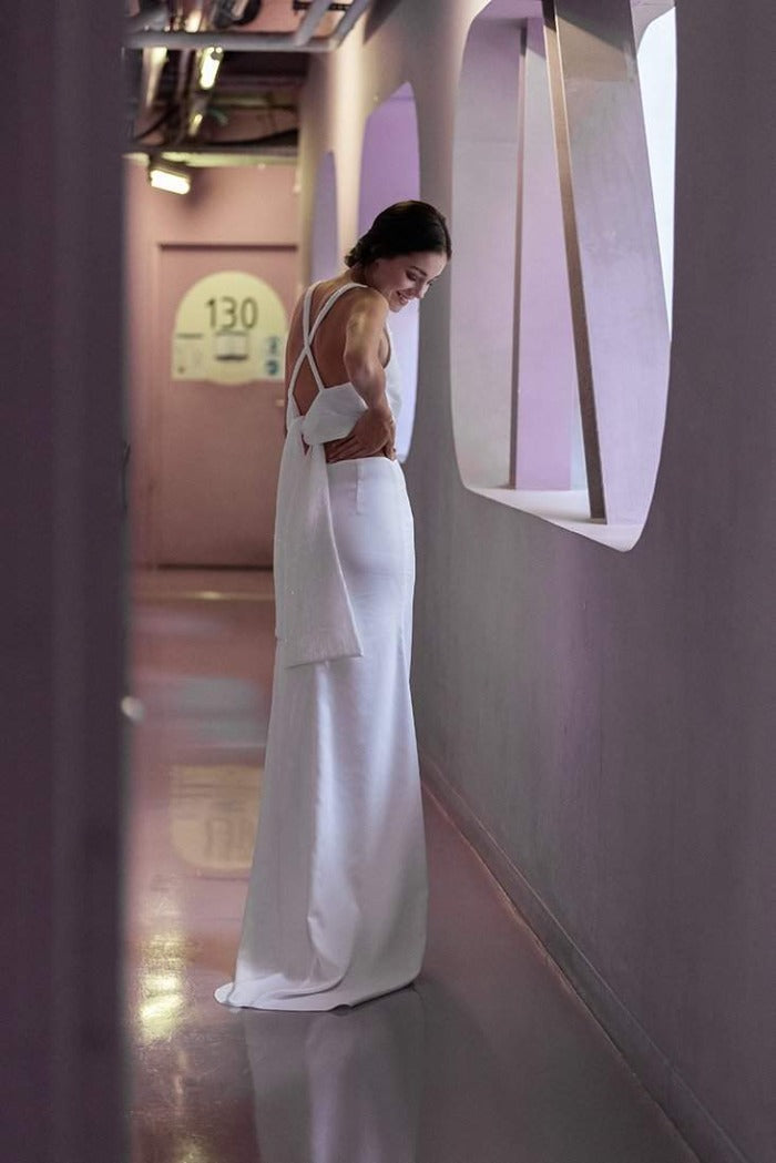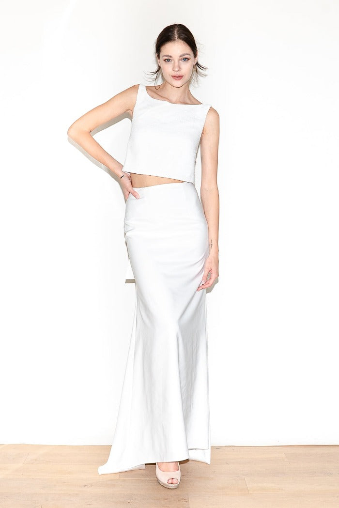 Top dos nu noué bretelles croisées en sequins ou en crêpe.